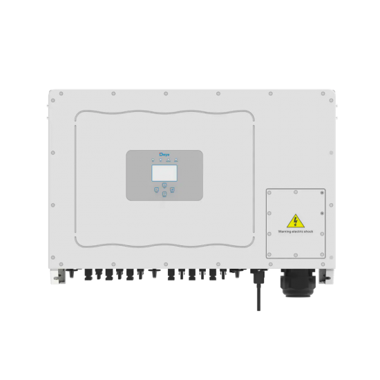 Deye SUN-100K-G03 – сучасний трифазний мережевий інвертор потужністю 100кВт, що зможе забезпечити надійну систему електроживлення приміщень великої площі житлового, промислового, виробничого та торгового призначення. Підтримка трифазного струму надає можливість широкого застосування пристрою. Даний інвертор не працює з акумуляторами в якості резервного електроживлення об'єкту.