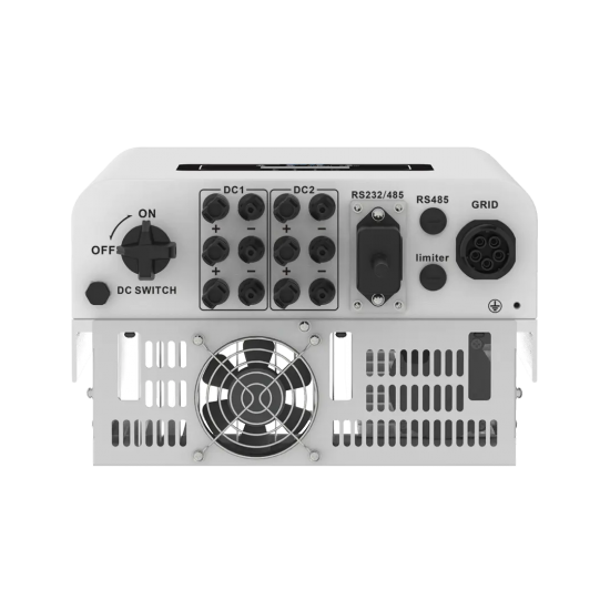 -В інвертор вбудовано два MPPT трекера по 3 стрінги на кожен трекер. Отже в системі сонячної електростанції можна розмістити аж 6 окремих масивів сонячних панелей в різних площинах. В цьому випадку сонячні батареї можна монтувати на різних сторонах даху, або на землі, послідовно, або паралельно. Вхідний струм кожного трекера: 32А. Вхідна напруга постійного струму від сонячних фотомодулів: 200-850В.
